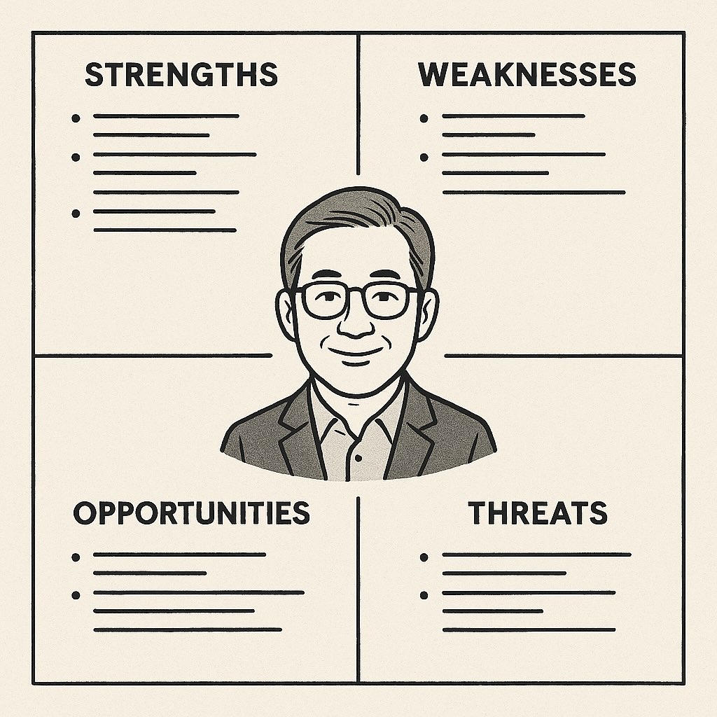 지난 2년 10개월 동안 협업했던 챗GPT에게 나의 SWOT 분석을 요청했더니 이렇게 나왔습니다. 시의적절한 피드백이라 생각하고 앞으로 더욱 분발하려 하겠습니다.