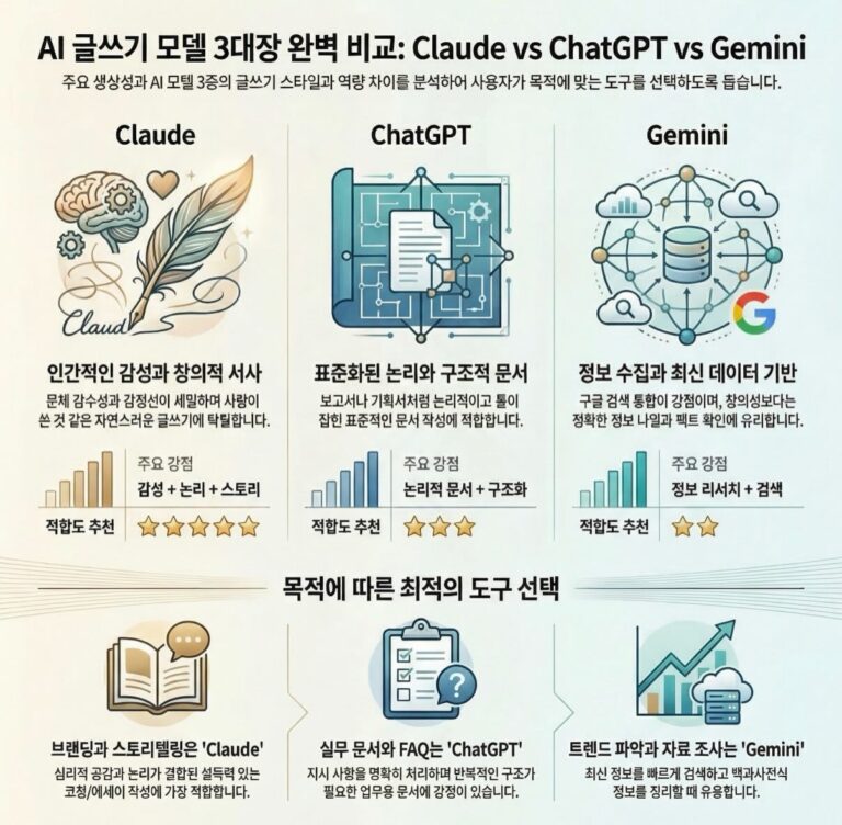최근 생성형 AI 기술이 비약적으로 발전하면서, 글쓰기를 돕는 강력한 도구들이 등장했습니다. 대표적인 주인공인 Claude, ChatGPT, Gemini는 각기 다른 장점을 가지고 있어, 내가 쓰고자 하는 글의…